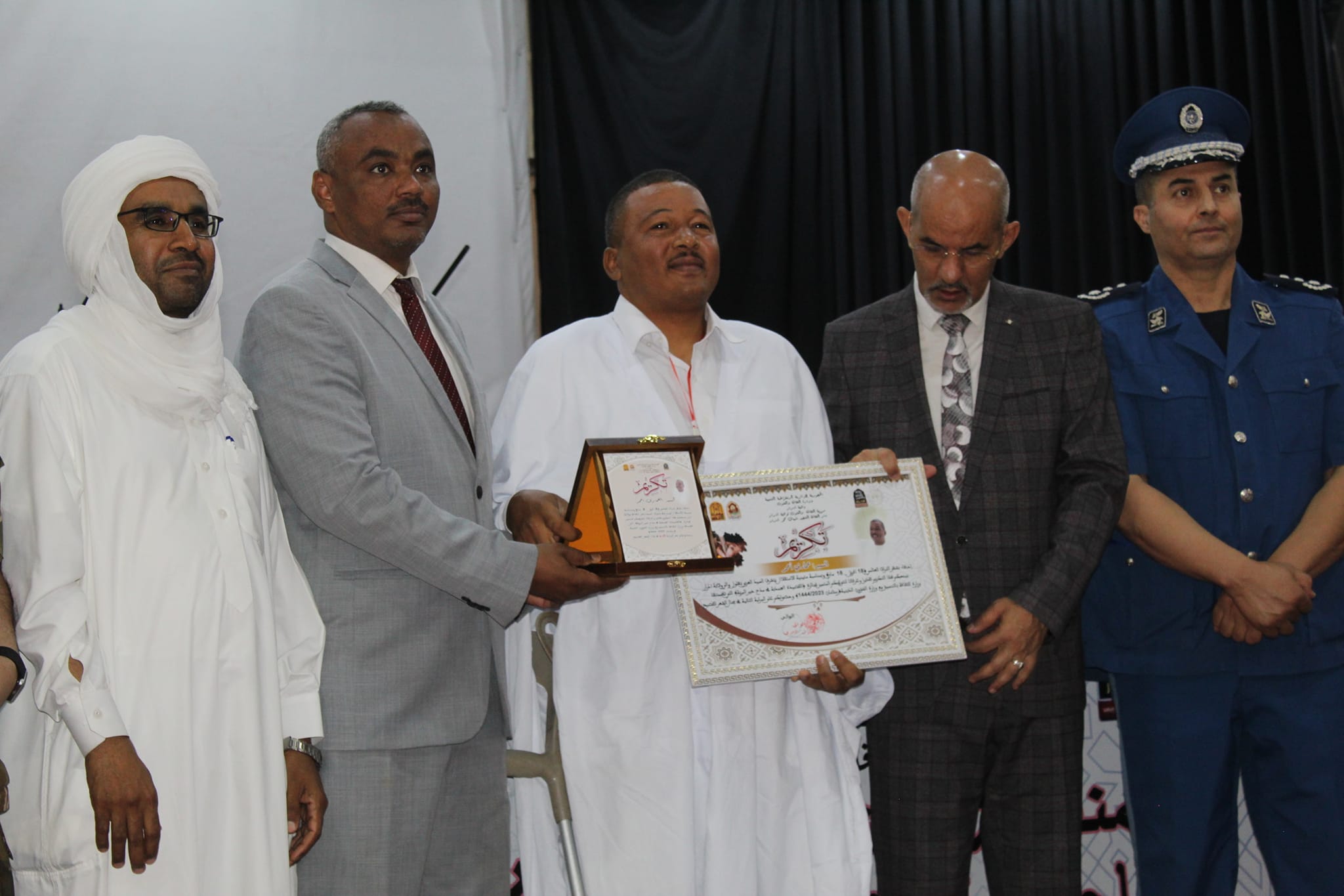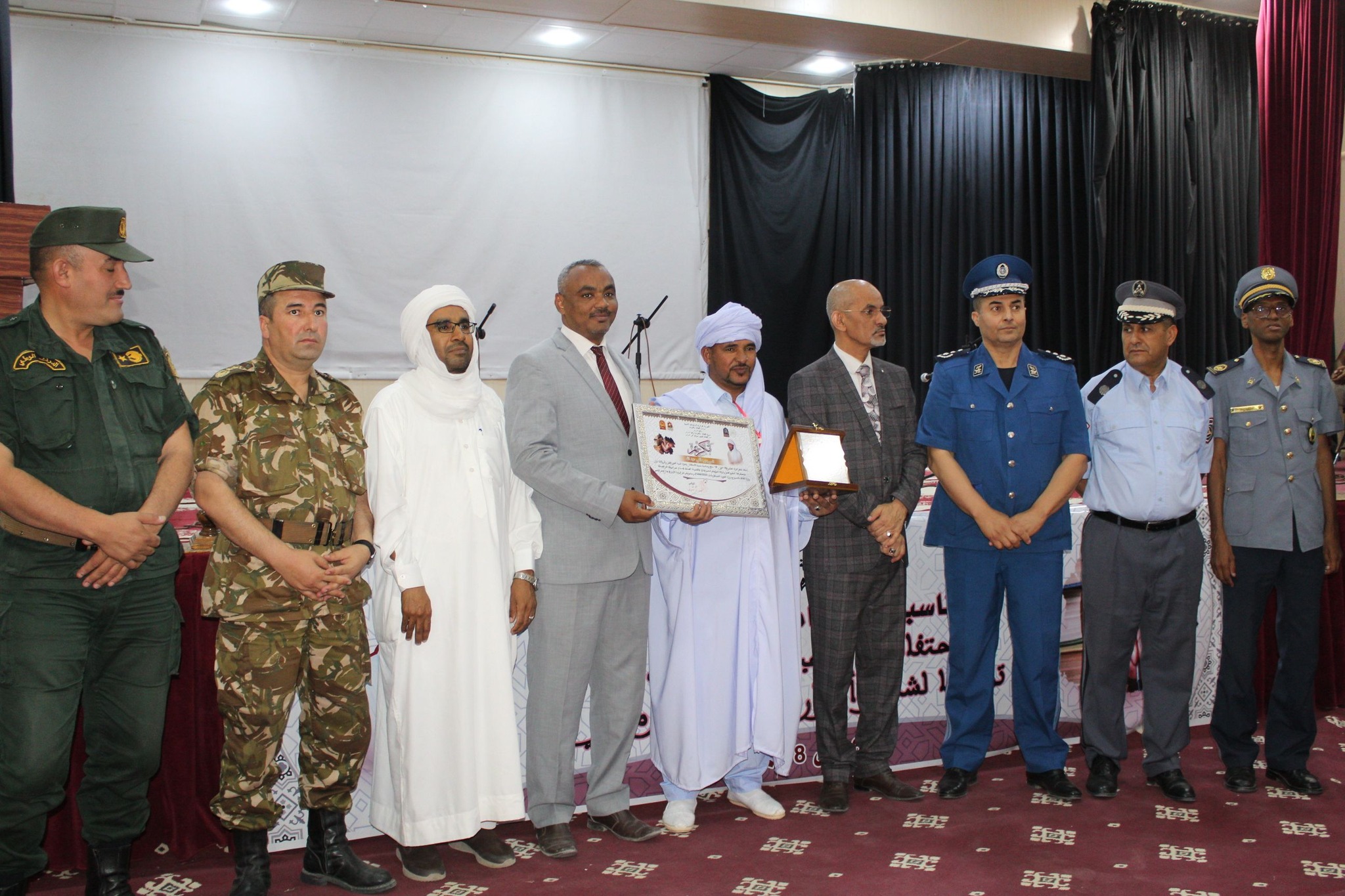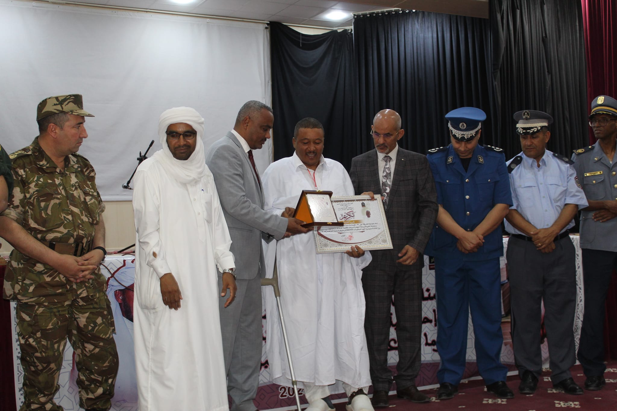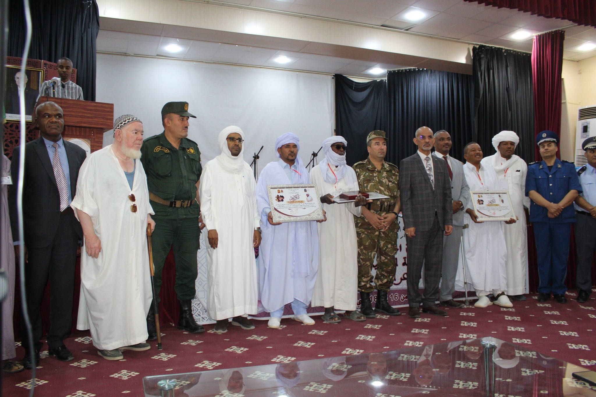 جانب من حفل تكريم والي ولاية ادرار لشاعر الرسول صلى الله عليه وسلم احمد العماري (عضو بجمعية المخطوط) بمعية الشاعر عبد الله برمكي ابن مدينة اولف المتوج باللقب في الشعر الشعبي