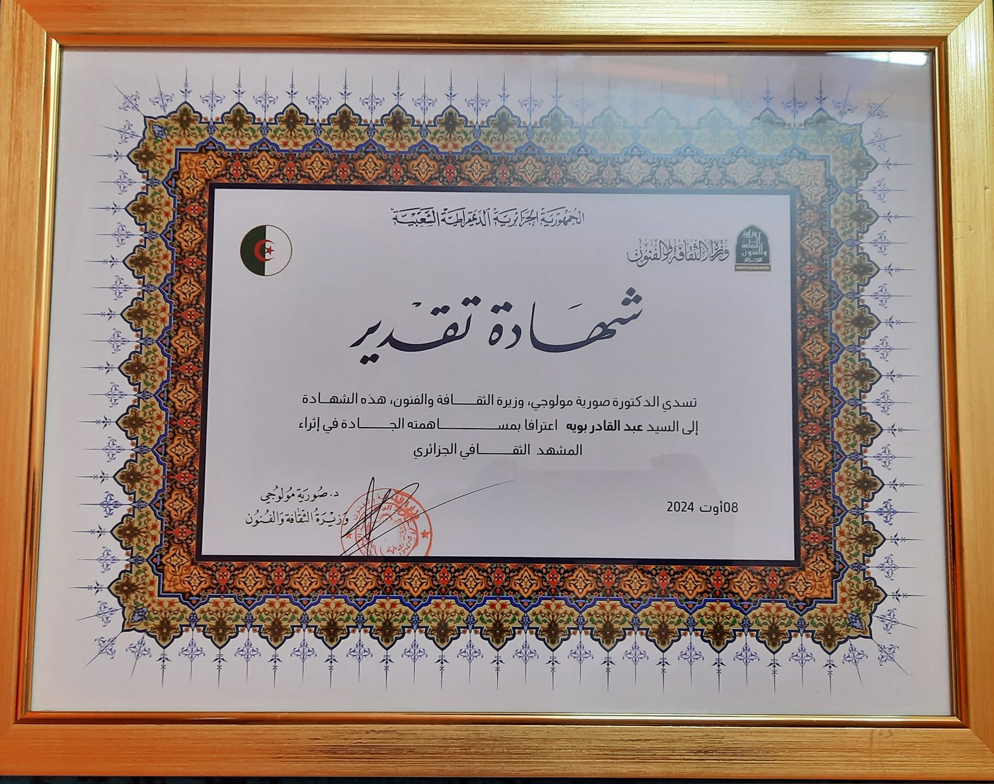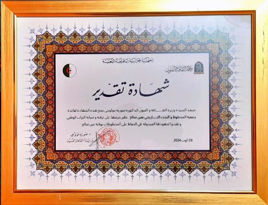 كان معرض مخطوطات جمعية المخطوط والبحث التاريخي، المحطة الثانية في زيارة السيدة وزيرة الثقافة والفنون التي أعجبت كثيرا بحجم المخطوطات التي تتوفر عليها الجمعية وكذا تنوعها من كتب دينية وعلمية (طب، فلك) حيث باركت السيدة الوزيرة جهود الجمعية ووعدت بمرافتها في مجال ترميم ورقمنة المخطوط تكملة للبرنامج الذي شرعت فيه من قبل المكتبة الوطنية حفاظا على الموروث الثقافي والذاكرة الوطنية